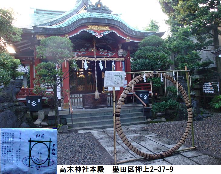 桜橋を渡ると、桜橋通りを東武伊勢崎線の踏切まで東進。飛木稲荷神社にも、高木神社にも明6月30日の大祓に備えて、茅の輪が設けられていた。曳舟川通りに出ると、東武伊勢崎線の曳舟駅から、高架線に沿って、水戸街道に出ると、そこは地蔵坂通りへの入口であった。明治通りに入ると、同じ方向に歩いているお方があり、どちらからともなく話しかけて、問わず語りの雑談をしながら歩いた。話によると、茨城県出身の73歳になるお方で、どうやら曳舟あたりに住んでいらっしゃるらしい。結局、一緒に白鬚橋を渡り、川沿いの遊歩道を離しながら歩いた。桜橋碑東詰で別れて帰宅した。9195歩、5.9㎞を歩いていた。