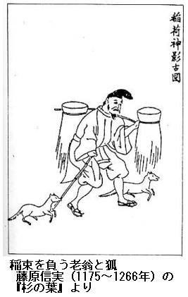 奈良時代末期以来狐を神秘動物とする思想が仏者、陰陽師の間に見られ、狐霊を駆使霊とする術者、幻術者などが民間に存したらしいことが、この時代の文献にみられる。稲荷神を奉ずる巫女・術者が真言密教や道教の影響の下に憑依(ひょうい)託宣を行い、これを「稲荷下げ)「稲荷おろし」と称するようになって、稲荷の使わしめから、次第に稲荷そのものと見られるようになったのではなかろうか。