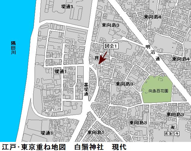 白髭神社(墨田区東向島3―5―2)の祭神は猿田彦大神。他に天照大神、高皇産霊神、神皇産霊神、大宮能売神、豊由気大神、建御名方神とある。境内内に三峯社、水神社、諏訪社などがある。
