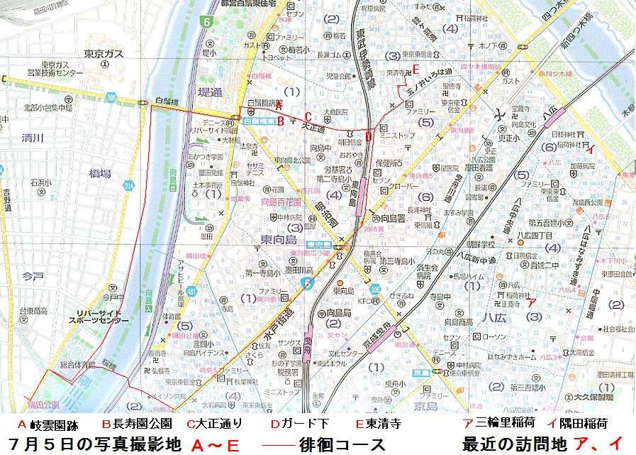 東清寺からいろは通りを引き返し東武伊勢崎線の線路伝いに南下して、東向島駅から水戸街道を下り、桜橋通りから、桜橋を渡って帰宅した。記録は9572歩、6.2㎞。