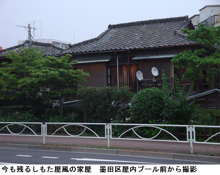 墨堤通りに面するところは、何処も鉄筋のマンションか株式会社ばかりで味気ないが、墨田区の屋内プールの前に2軒ほど並んでしもた屋風の昔ながらの和風建築の家がある。こういう風景をみると何となくほっとする。「じまん草餅」の店が取り壊されて平地になっている。建替えになるらしいが、これも味気ないコンクリート作りの風情のない店舗になるのだろうか。