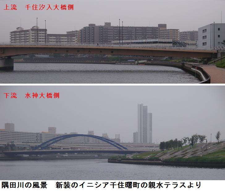 桜橋を渡り、墨堤通りを北上。東白鬚公園で久し振りに梅若橋を越えて、新装なったイニシア千住曙町のテラスを通って千住汐入大橋に出る。これを渡って、汐入公園のさくらばしを北側から渡り、西白鬚ポンプ場の前から瑞光橋・石濱神社を通って帰宅した。