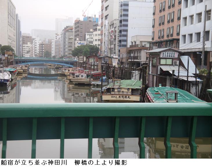 柳橋に出る。ここ神田川の沿岸には現在においても舟宿(ふなやど)が立ち並んでいる。舟宿とは屋形船や釣舟を業とする商業施設のことで、宿と称しているが宿屋ではなく船の貸し出しを生業(なりわい)とするが、遊里に程近い舟宿の場合は二階に休息所などを設ける場合もあった。このような休息所は社交場として人気が高く、遊里に通う客などに愛された。江戸や大阪などには川が多く、遊び客にとって舟宿は欠かせない存在であったのであろう。特に江戸は縦横に河川や運河がめぐらされており水運都市だったため、随所に船宿が存在したのである。