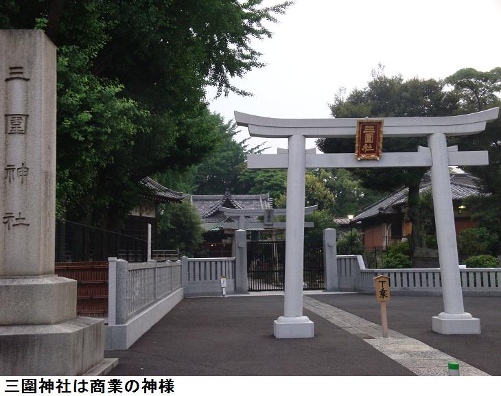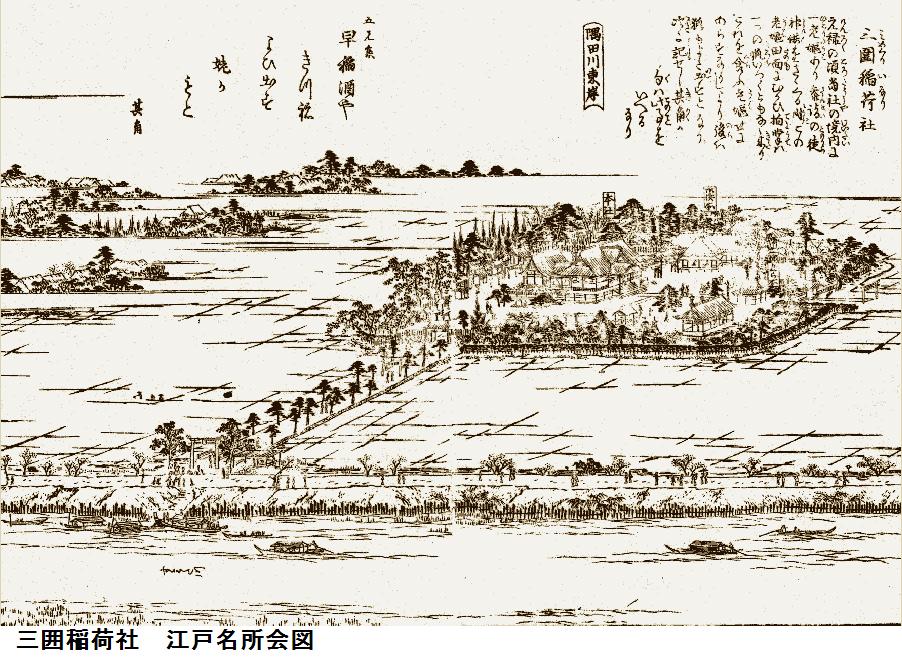 元禄6年(1693)の雨乞神事で名を知られ、享保元(1716)年に三井氏族によって正一位の位を得、明治6年に小梅村鎮座稲荷神社から三圍神社(みめぐり)に改称した。