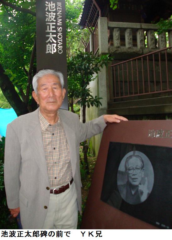 馬道まで、裏通りを通って家路に着いたが、途中道引き地蔵尊をみたり、路地裏でお囃子の演奏をやつているのをみたり浅草の風景をみてもらった。YK兄の友人に池波正太郎のファンがいるとのこと、待乳山公園の入口にある池波正太郎の碑のところで、写真に収めた。この場所には神酒所が設けられてあり、町内神輿も飾られている。