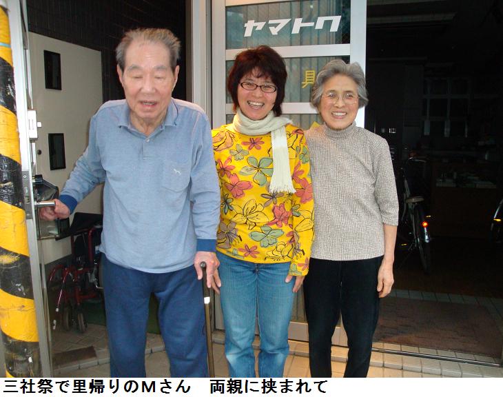 家に帰ろうとT家の前を通るとこれも兼愛塾の塾生だったMちゃんが三社祭りで里帰りしたのか、ご両親と一緒に家の前で談笑されているのに出会った。