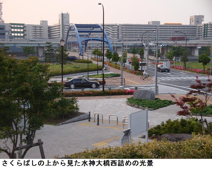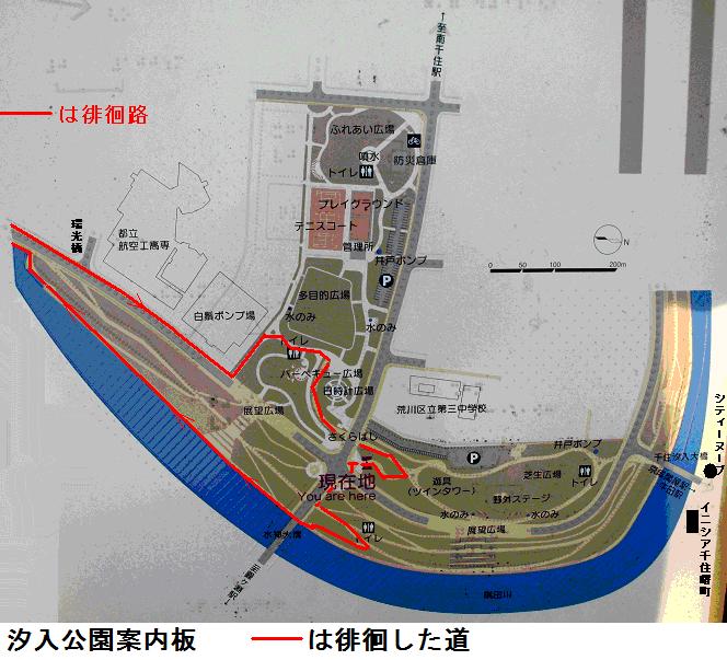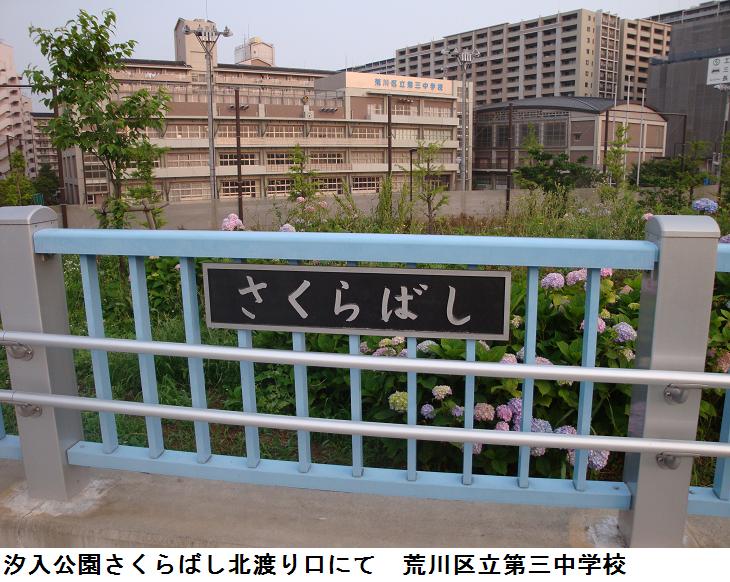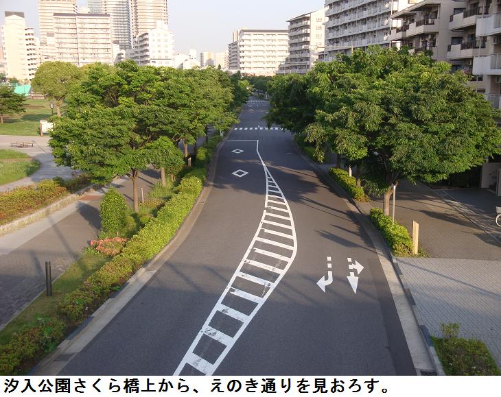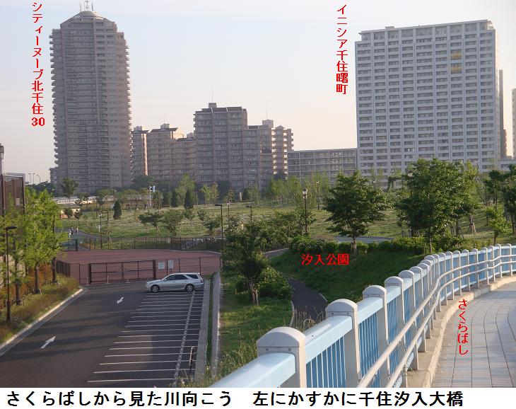 汐入公園を少し散策していると、胡録トンネルの上の展望台に出た。ここからすぐ下に「さくらばし」北詰が見える。先日とは逆の方向からこの橋を渡ってみることにした。ここの「さくらばし」は蛇行していてかなり長く、全長が1120m、凡そ15分ほどかかり、橋を渡りながら周りの景色が展望できる。