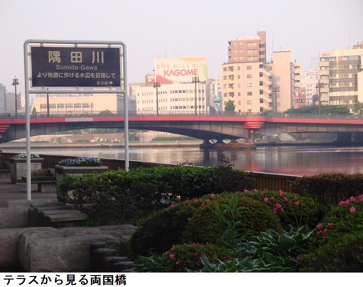 京葉道路を只管西進、回向院の前で両国ぶらり街角展の立て札等を読んで、回向院に入ろうかどうしようかと迷ったが、あまり時間もないようなので、そのまま両国橋まで出て、何時もの親水テラスに降りると、吾妻橋まで、北進してテラスを上がり、吾妻橋を渡り、隅田公園を通って帰宅した。
