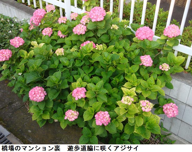 橋場のマンション裏の遊歩道にもいろいろな花が植えられているが、いまはやはり紫陽花が一番目立つ。今戸に入る辺りからテラスに降りて桜橋まで歩いてみた。陽気もよくなった所為か、ベンチでお休みの宿無しさんが増えたようにも思える。