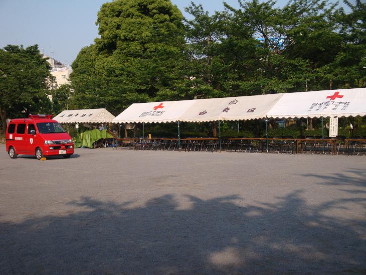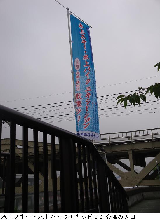 山谷堀水門の前には、消防署の車が止まり、テントが張りメグされ、水門には合同水防訓練の掲示がしてある。どうやらここで、消防署合同の水防訓練が行われるらしい。