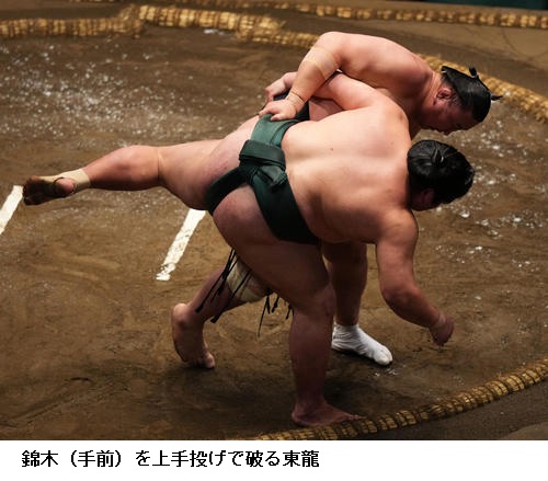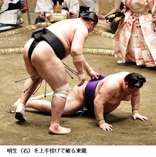 ▽明生に東龍は東龍が上手投げ。