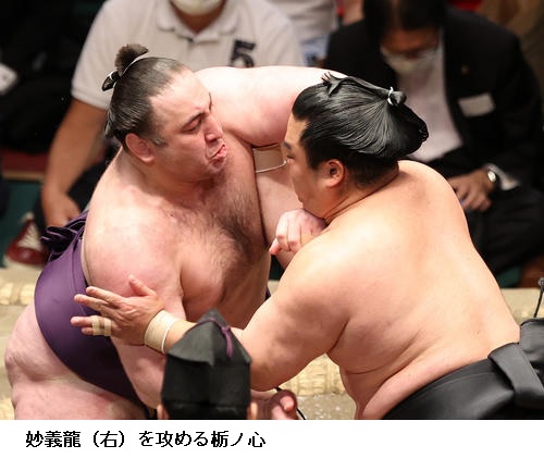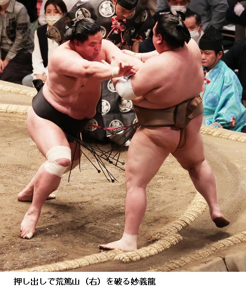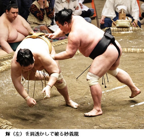 ▽輝に妙義龍は妙義龍が肩透かし。