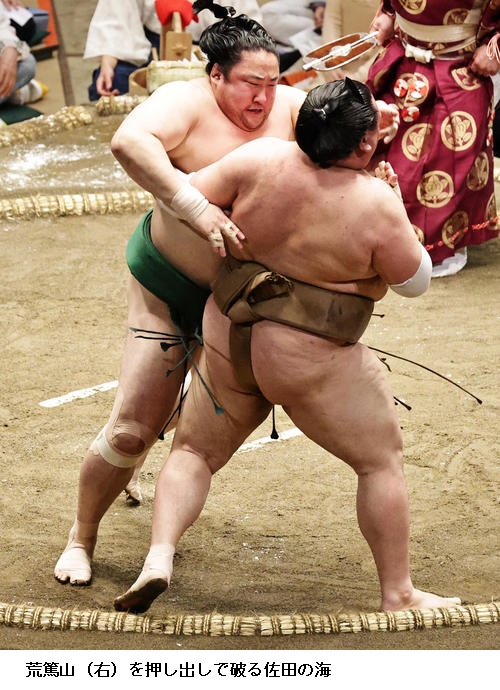 ▽佐田の海に荒篤山は佐田の海が押し出し。
