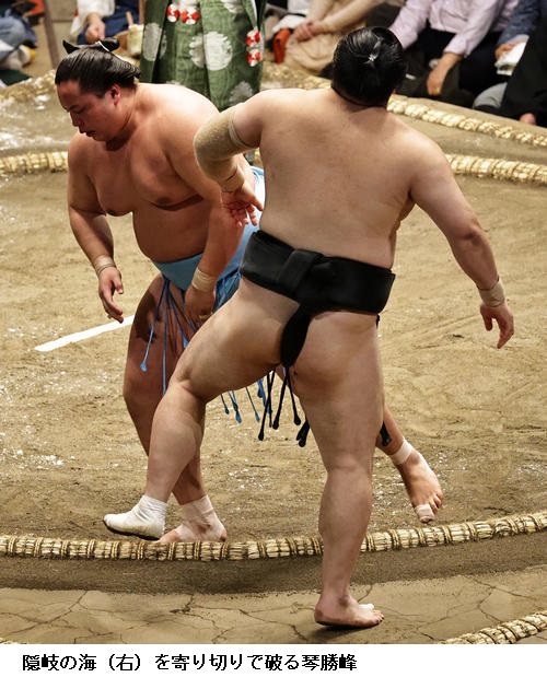 ▽隠岐の海に琴勝峰は琴勝峰が寄り切り。