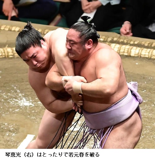 ▽若元春に琴恵光は琴恵光がとったりで勝ちました。