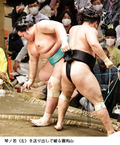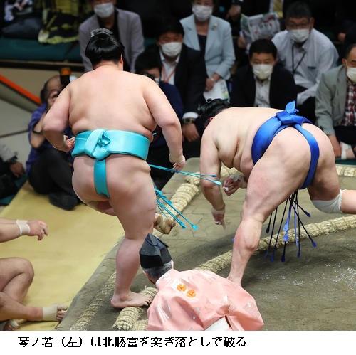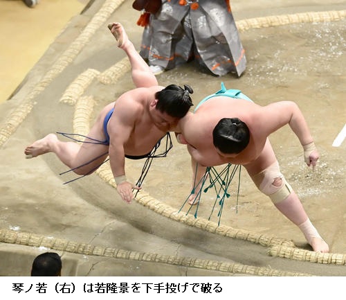 ▽若元春に琴ノ若は琴ノ若が寄り切り。