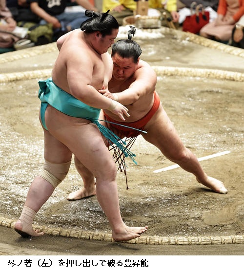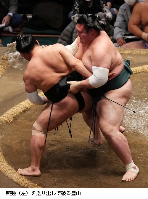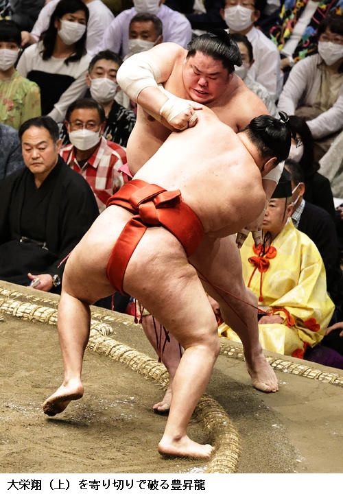 豊昇龍は、大栄翔と小結どうしの一番を制し「なるべく突きをさせないよう集中した。この気持ちで最後まで頑張りたい」と振り返りました。