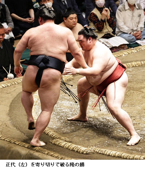隆の勝は大関 正代を破り、「先手先手で行こうと思っていたので、うまく取れてよかった。先場所よりも動きがいい」と手応えを口にしていました。