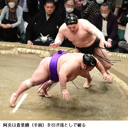 ▽若隆景に阿炎は若隆景が押し出し。阿炎は負け越しました。