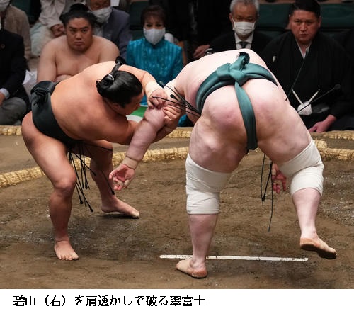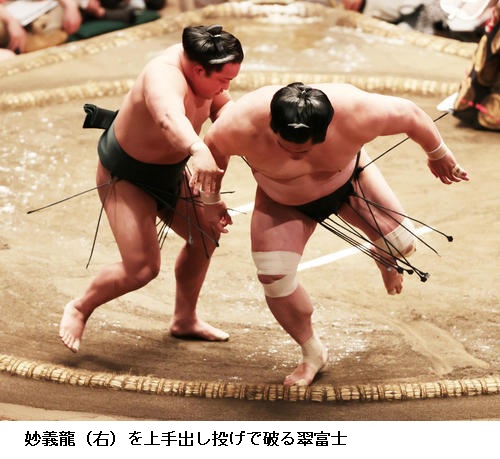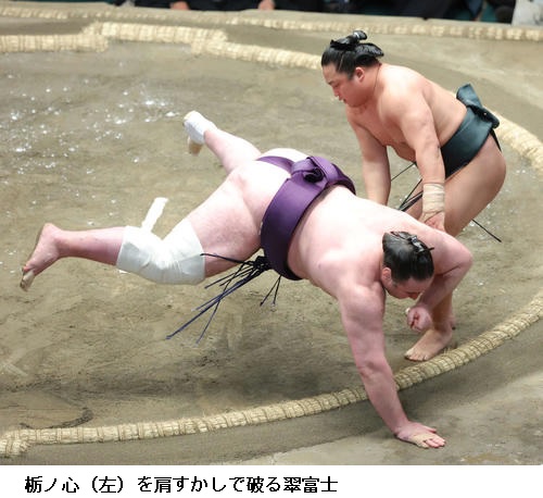 ▽翠富士に栃ノ心は翠富士が肩透かし。