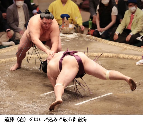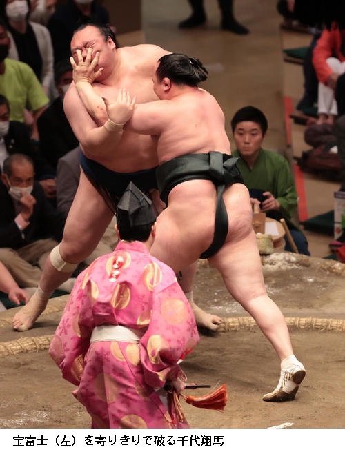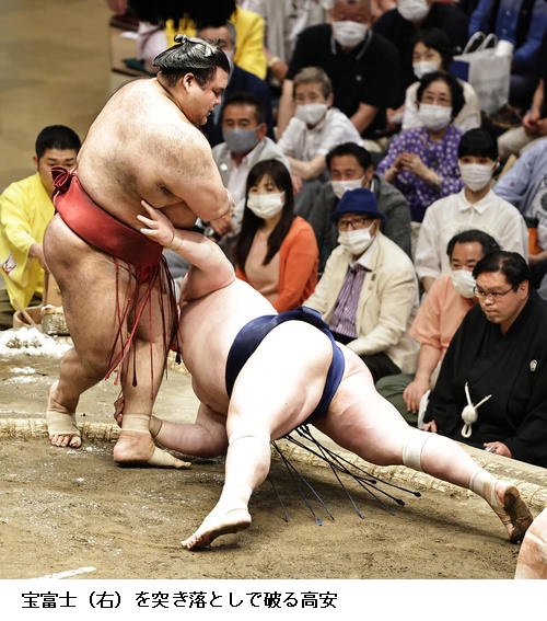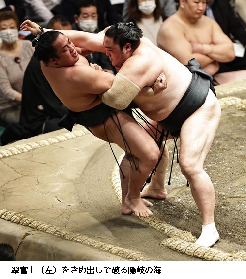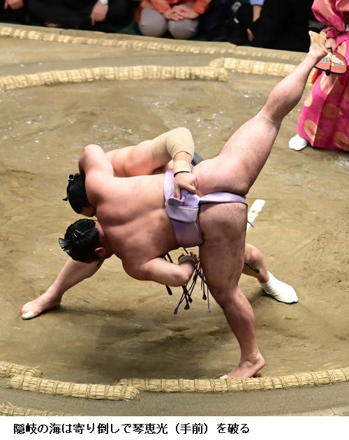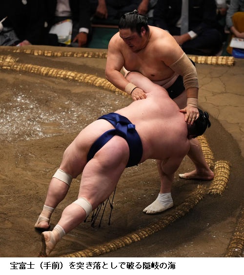 ▽宝富士に隠岐の海は、隠岐の海が突き落とし。
