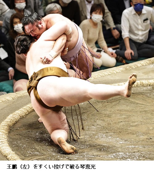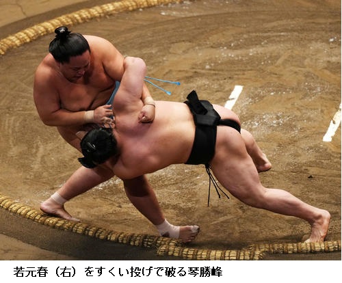 ▽琴勝峰に若元春は、琴勝峰がすくい投げで勝ちました。