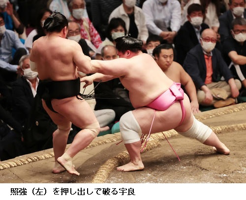 ▽宇良に照強は、宇良が押し出し。