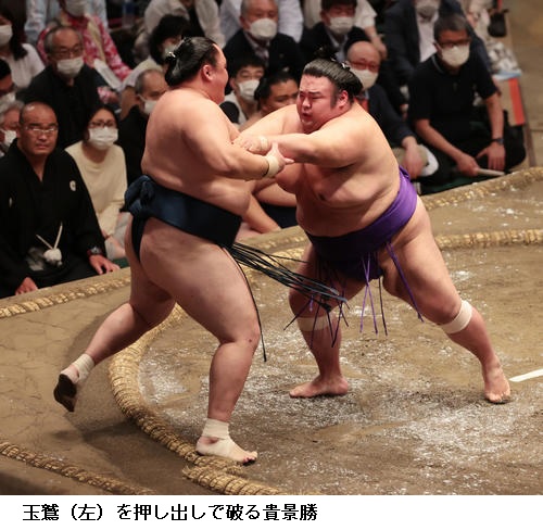 ▽玉鷲に大関 貴景勝は、貴景勝が押し出し。13日に横綱 照ノ富士を破った玉鷲は2敗となりました。