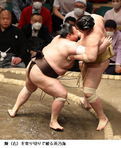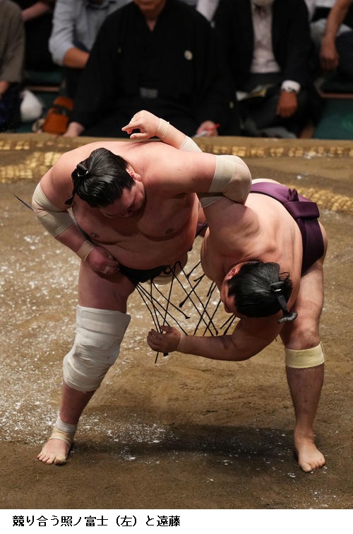 ▽横綱 照ノ富士に遠藤は、照ノ富士がはたき込みで勝ちました。