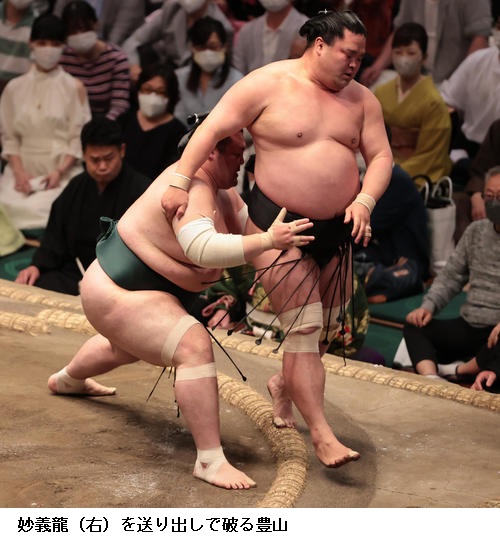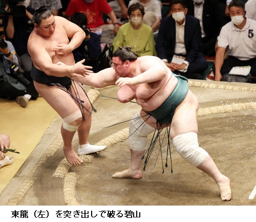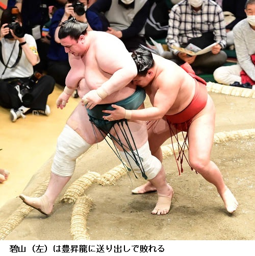 ▽碧山に豊昇龍は豊昇龍が送り出しで勝ち越しました。