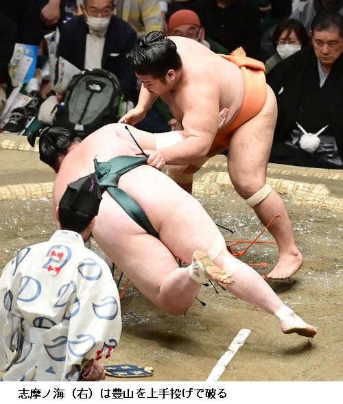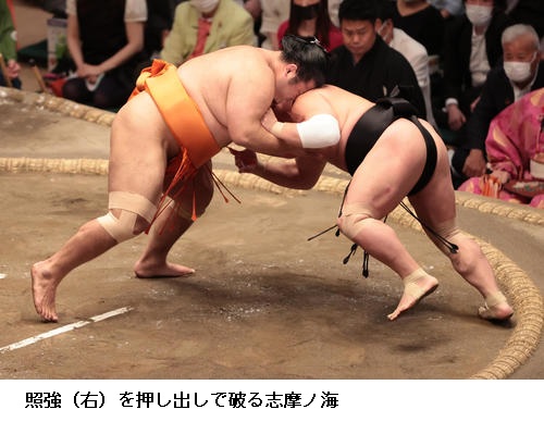 ☆志摩ノ海 下から、下からといくのが自分の相撲。それだけを意識していました。下がらず自分から前に出ることができているけど、勝った相撲にも修正するところはある。(課題は)頭が上がらないとか、脇のところとか。ちょっとしたところですけど、しっかり修正して臨みたい。