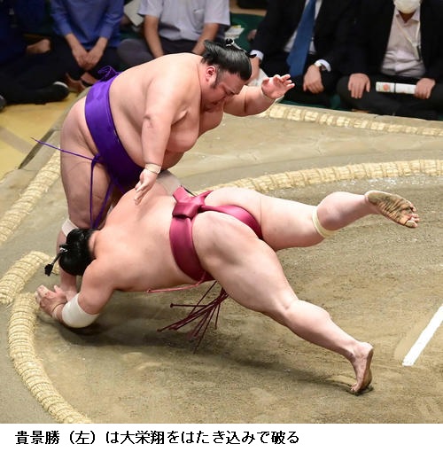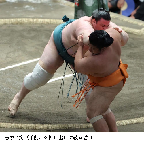 一方、今場所初黒星の碧山は「下から下から攻められてそこからもっていかれた。またあした頑張りたい」と切り替えに努めていました。