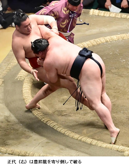 ▽北勝富士に大関 正代は、北勝富士が押し出し。正代は1勝6敗となりました。