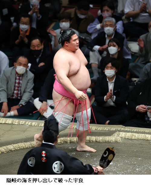 宇良 (相撲内容は)ちょっと分からないですね。相手見て圧力かけられたのでよかったです。(間垣親方からアドバイス)「前に攻めた方がいいよ」と。勝てたんでよかったです。