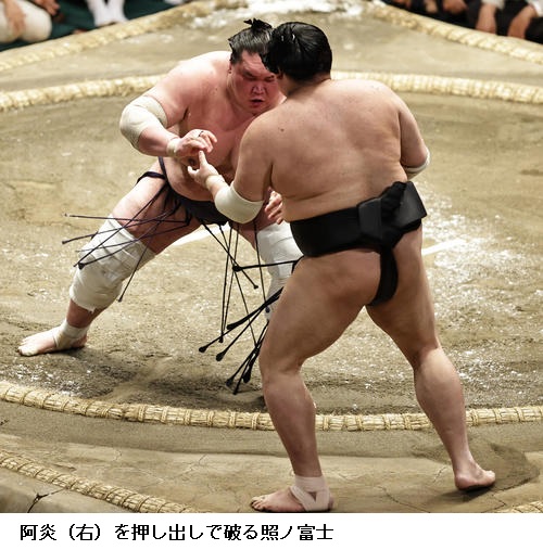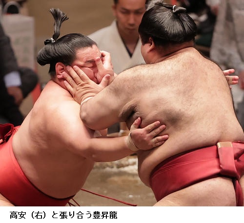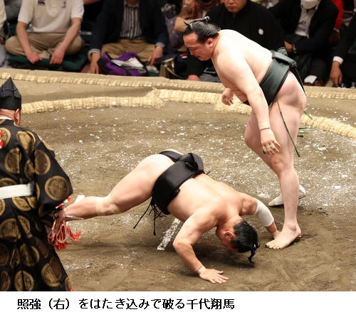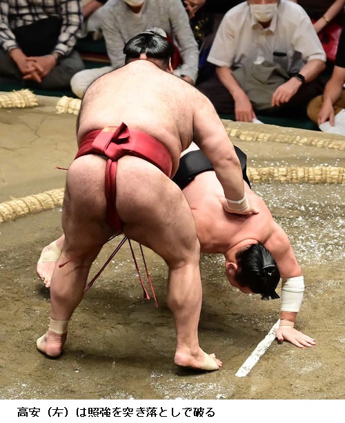 ▽照強に高安は高安が突き落とし。