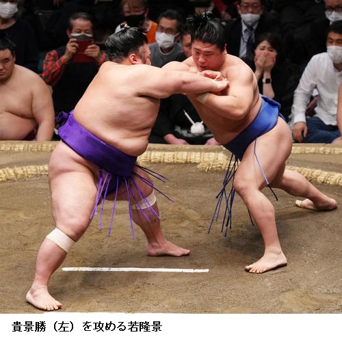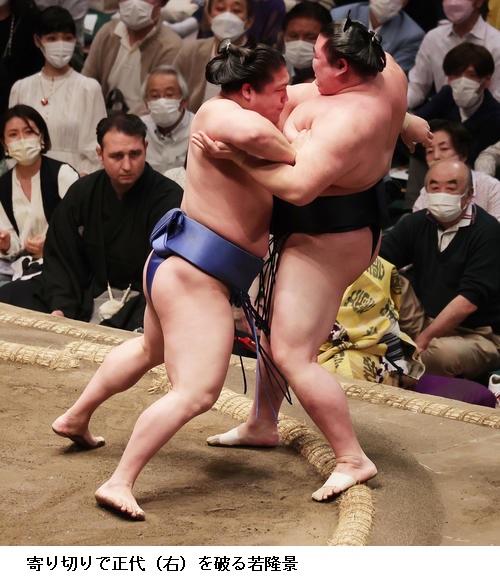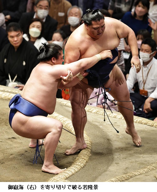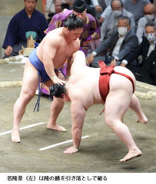 ☆若隆景 下からという意識で相撲とりました。前に出ようとそういう意識で相撲をとりました。(先場所の意識は)1日一番自分の相撲をとろうと。自分の相撲に集中しているだけです。しっかり切り替えて、集中していきました。