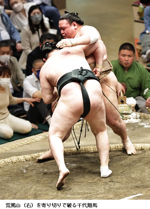 ▽志摩ノ海に千代翔馬は、千代翔馬が寄り切り。