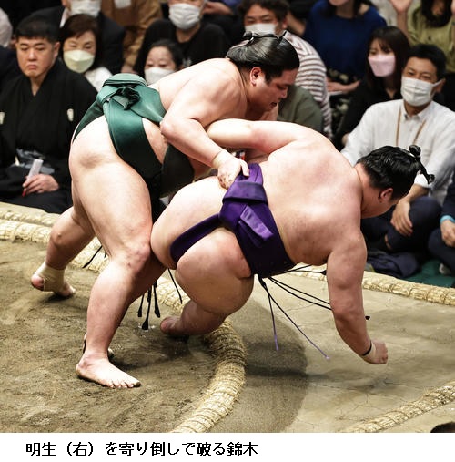 ▽錦木に北勝富士は錦木が押し出し。