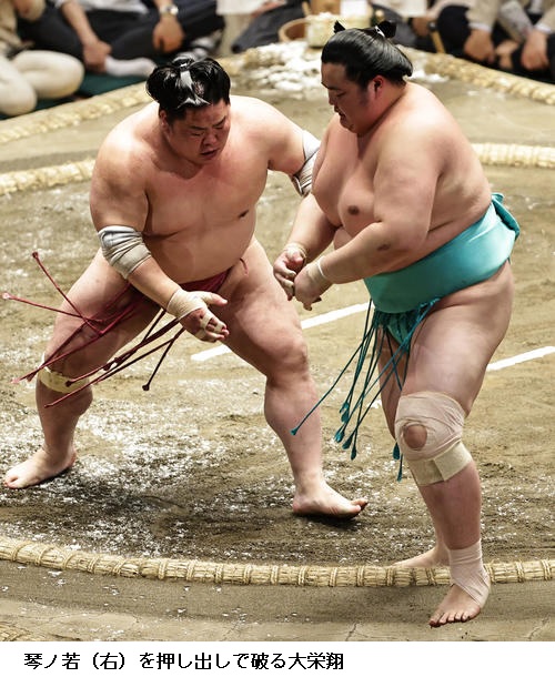 ☆大栄翔 昨日はやっぱり立ち合いが良くなかったので、当たって良い相撲を取ろうと思った。逆に立ち合いを集中すればできると思って、理詰めよく攻めれてたんで良かったと思います。場所前はいつも通りだったんですけど、良い相撲を取れて気持ちが乗ってきている。