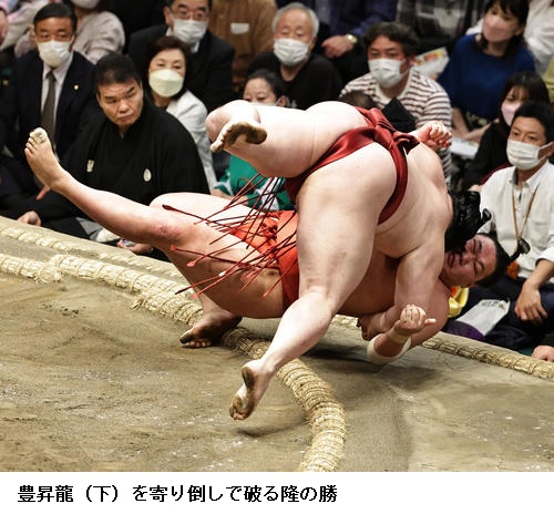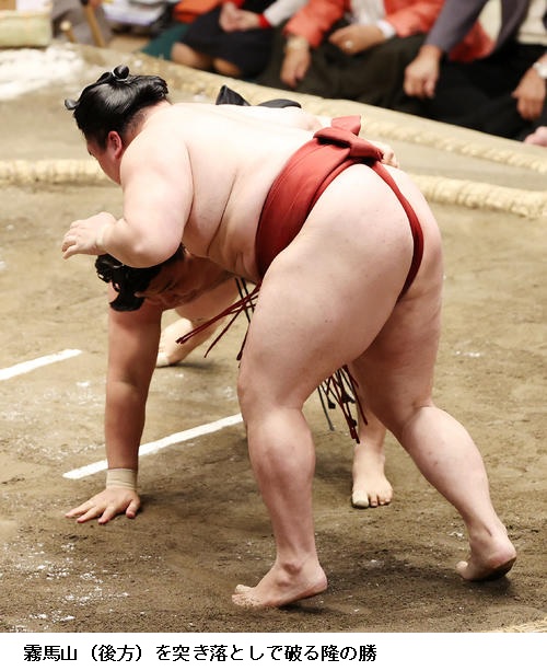 ▽隆の勝に霧馬山は隆の勝が突き落としで勝って3敗を守りました。