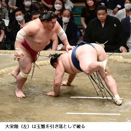 小結・大栄翔は大関・御嶽海を破って連敗を避け、「きのうは立ち合いが悪かった。体は動いているので立ち合いを集中しようと臨んだ。その後もリズムよく攻められたのでよかった」と振り返りました。
