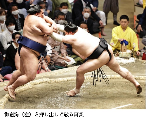 ▽豊昇龍に阿炎は、豊昇龍が寄り切り。