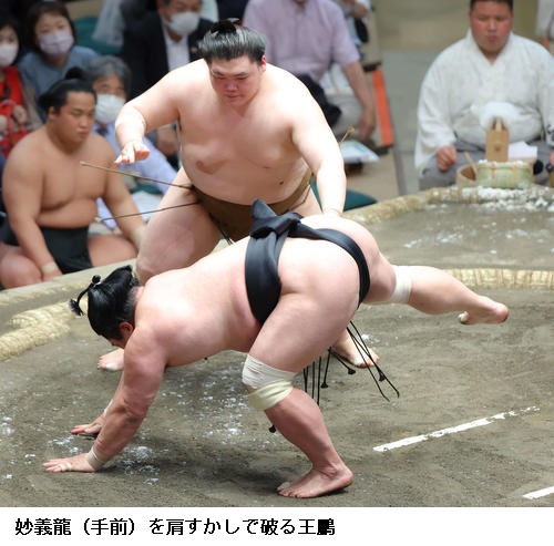 ★王鵬 当たって、距離を取られて、下に入られた。自分の自信のある形でいきたかったけど、うまくいかなかった。全然何もできなかった。(今場所は)上位の人たちと当たり、まだまだ足りないことがあると感じた。明日からまた頑張ります。