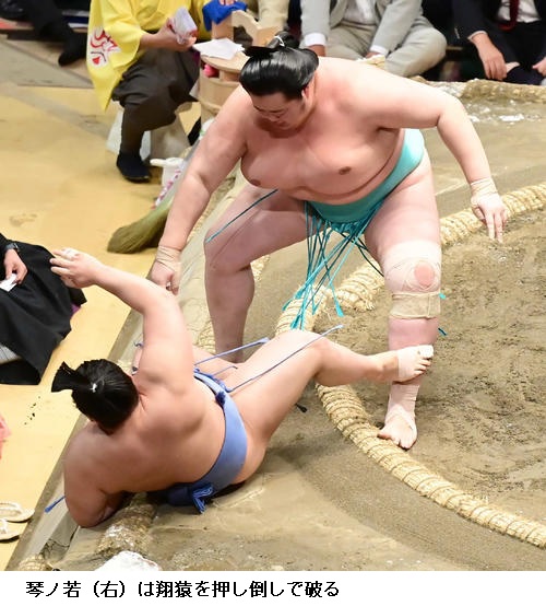 琴ノ若は3場所連続の勝ち越しで「先に攻められたのでそこがよかった。気持ちは変わらずにしっかり最後までできれば」と話していました。