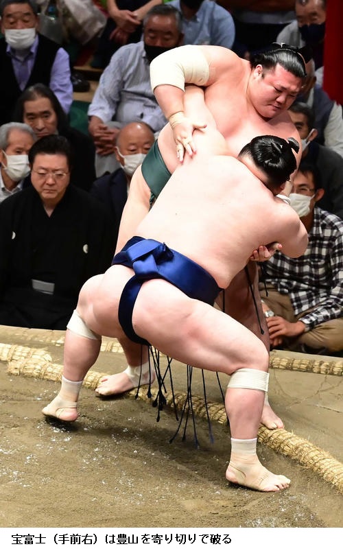 ▽豊山に宝富士は宝富士が寄り切り。豊山は負け越しです。