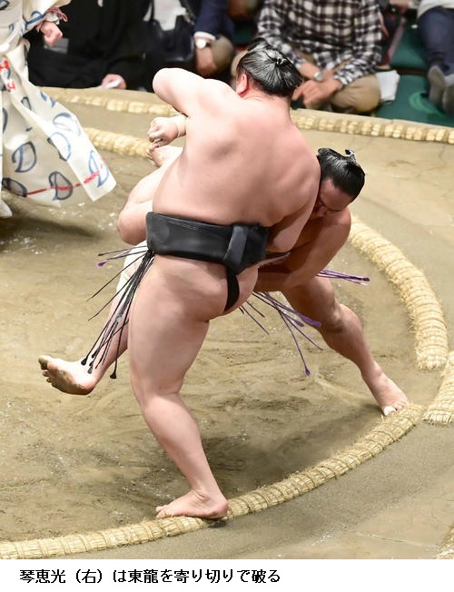 ▽琴恵光に東龍は琴恵光が寄り切り。