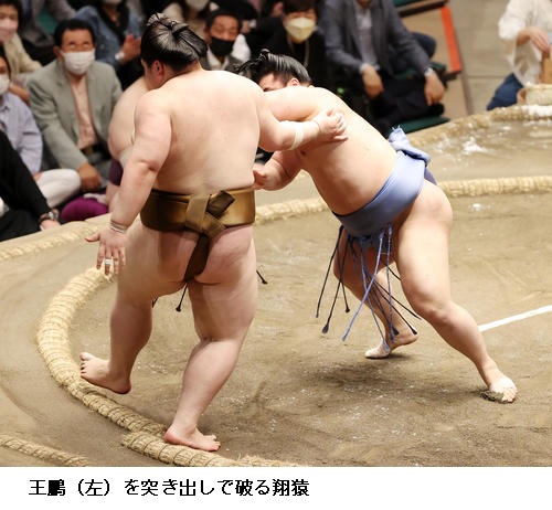 ▽翔猿に王鵬は翔猿が突き出し。王鵬は負け越しました。