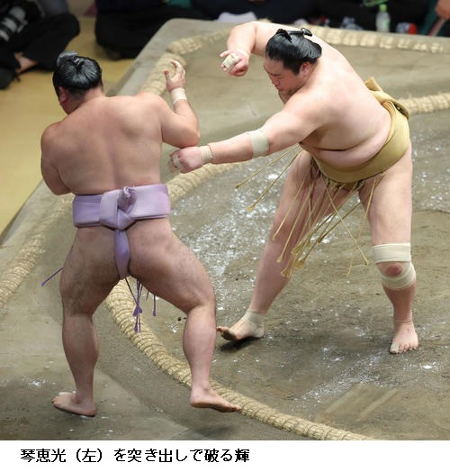 ▽輝に琴恵光は輝が突き出しで勝ちました。
