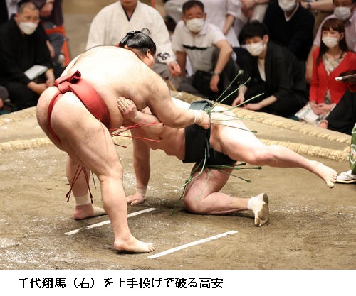 ▽高安に千代翔馬は高安が上手投げで勝ちました。