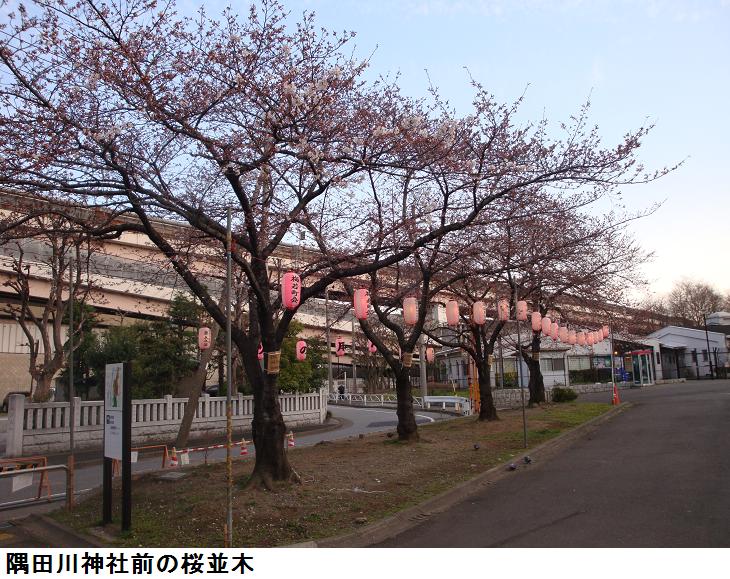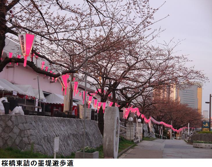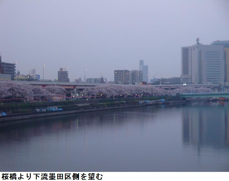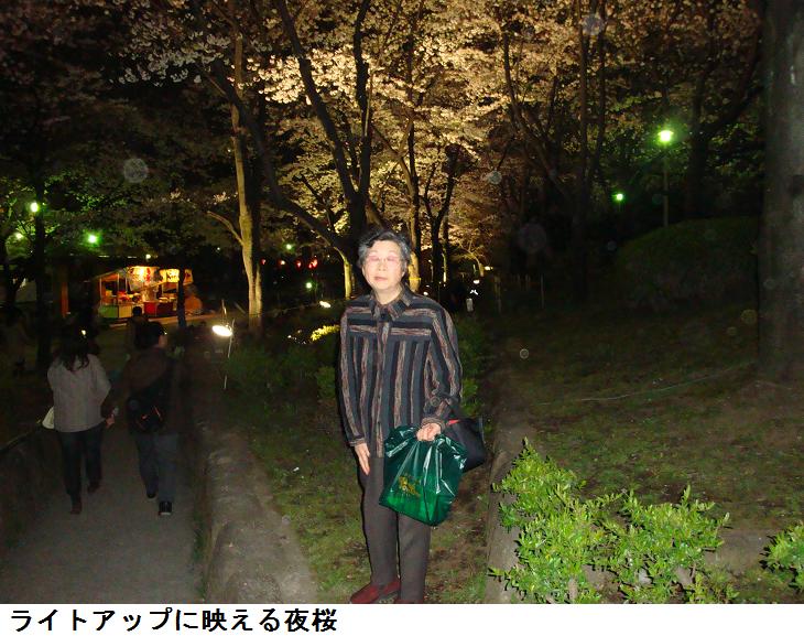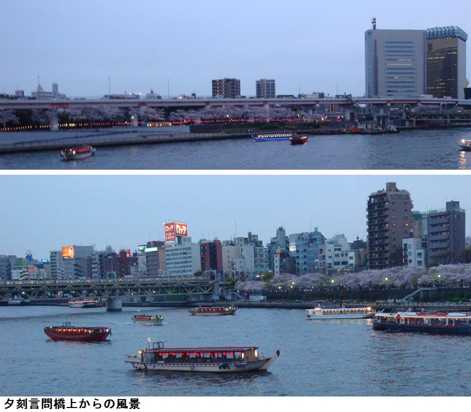 夕刻、夜桜を見学すべく婆様と一緒に再び言問橋を渡り、牛島神社から水戸邸の庭園を回り吾妻橋を渡ることになった。松屋の地下の食品売り場で夕食を買い、またもや隅田公園に入り、夜桜を見て帰宅した。